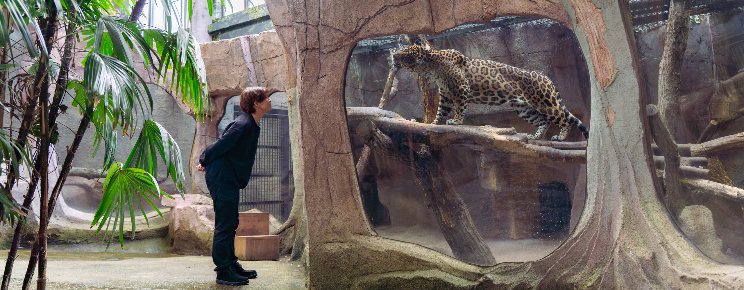 一歩踏み出すと、熱帯の湿地(ウェットランド)に暮らす動物達の楽園が目の前に広がります。 普通ではみられない動物のおなか側が見られるガラス展示などもあり、歩きながら動物達を間近で観察でき、野生の息づかいを感じる事ができます。