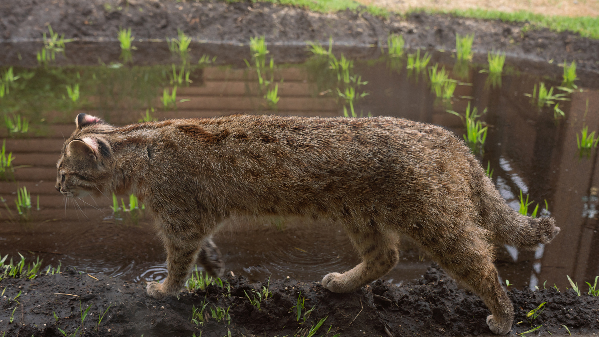 国の天然記念物で、国内希少野生動植物種に指定されているツシマヤマネコは、長崎県対馬だけに分布する野生のネコであり、ベンガルヤマネコの亜種とされています。現在の生息数は 90または 100 頭程度とされており、絶滅の危機に瀕しています。主に森林に生息していますが、田や畑でネズミやモグラなども捕食します。