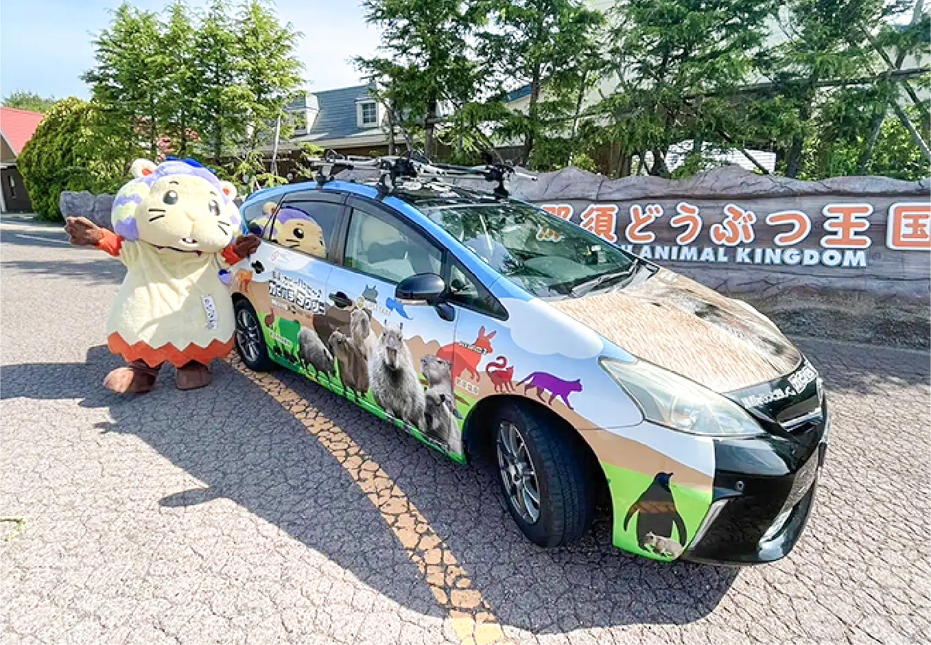 2015年にファーストタクシーグループ「那須合同自動車株式会社」と那須どうぶつ王国が共同で送りだした、業界初・世界に1台しかない「カピバラタクシー」で那須どうぶつ王国に行こう!(貸切・直行料金。迎車料金なし。途中立ち寄り場所変更は不可。)