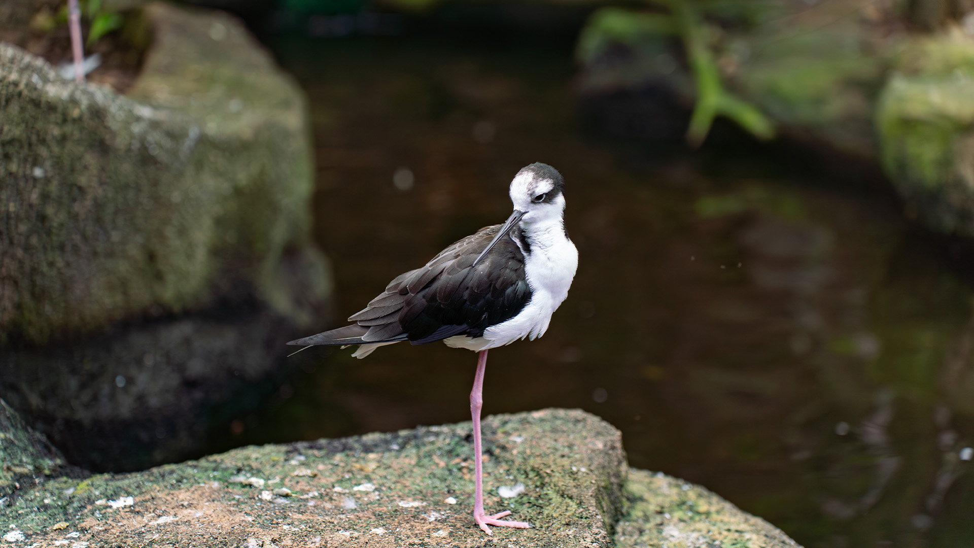 浅い湿地に生息するクロエリセイタカシギは、群れで行動する美しい水鳥です。水生昆虫や甲殻類、小魚を食べ、昼間に活発に動き回ります。繁殖期には浅い池や干潟のある川岸に草や小石で簡単な巣をつくり、2〜5個の卵を産んで、群れで協力して子育てを行います。那須どうぶつ王国のウェットランドでは、足元近くにいることもあるため、じっくり観察しながら足元に注意して見られるのが魅力です。群れでにぎやかに動き回る姿や、足の長いスタイルも見どころです。