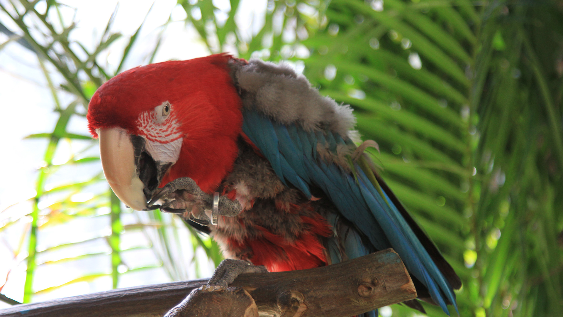 体色は美しい紅色で、翼は赤・緑・青などの鮮やかな色をしており、目の周りに赤い縞模様があるのが特徴です。強力なくちばしを持ち、硬い木の実も割ることができます。那須どうぶつ王国の「熱帯の森」では、鮮やかな羽色や力強いくちばしを間近で観察することができます。