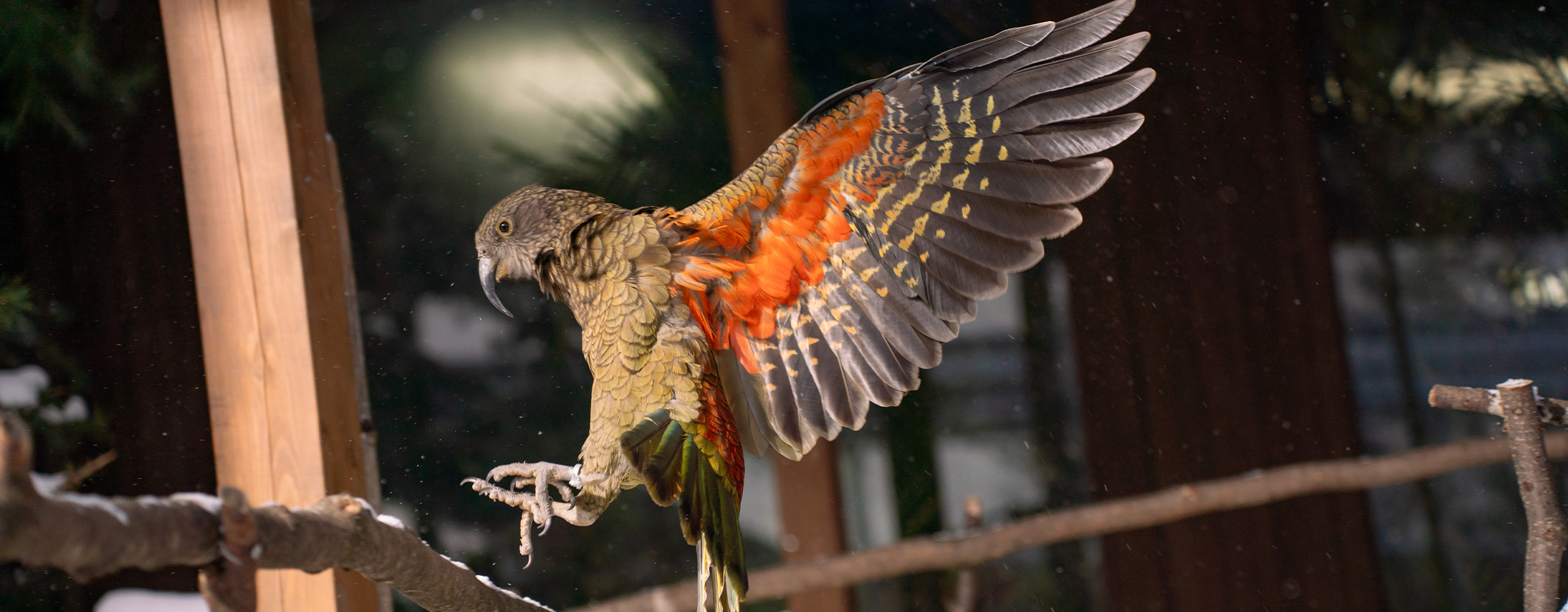 高山地帯を始めとした様々な環境に生息するケアの生態を踏まえ、展示場は草地、小川、岩場といった多様な環境を備えております。こうした豊かな環境は、探索や水浴び、飛翔といったケアの自然な行動を引き出します。