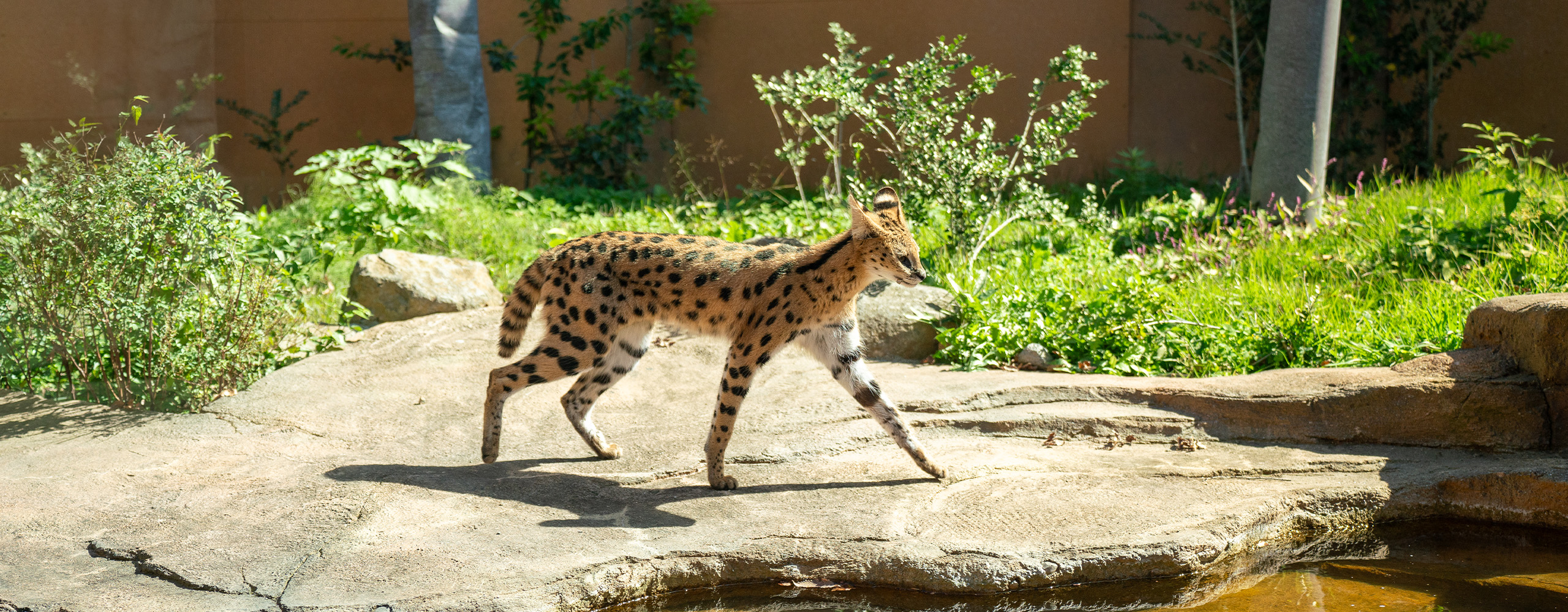 アフリカに生息するサーバルの体の特徴や動きが見えるような構造になっており、野生のネコであるサーバルがのびのびと暮らす姿を見ることができます。