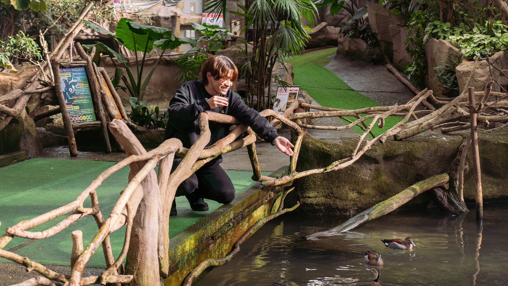 ウェットランド内の水鳥への給餌体験ができます。