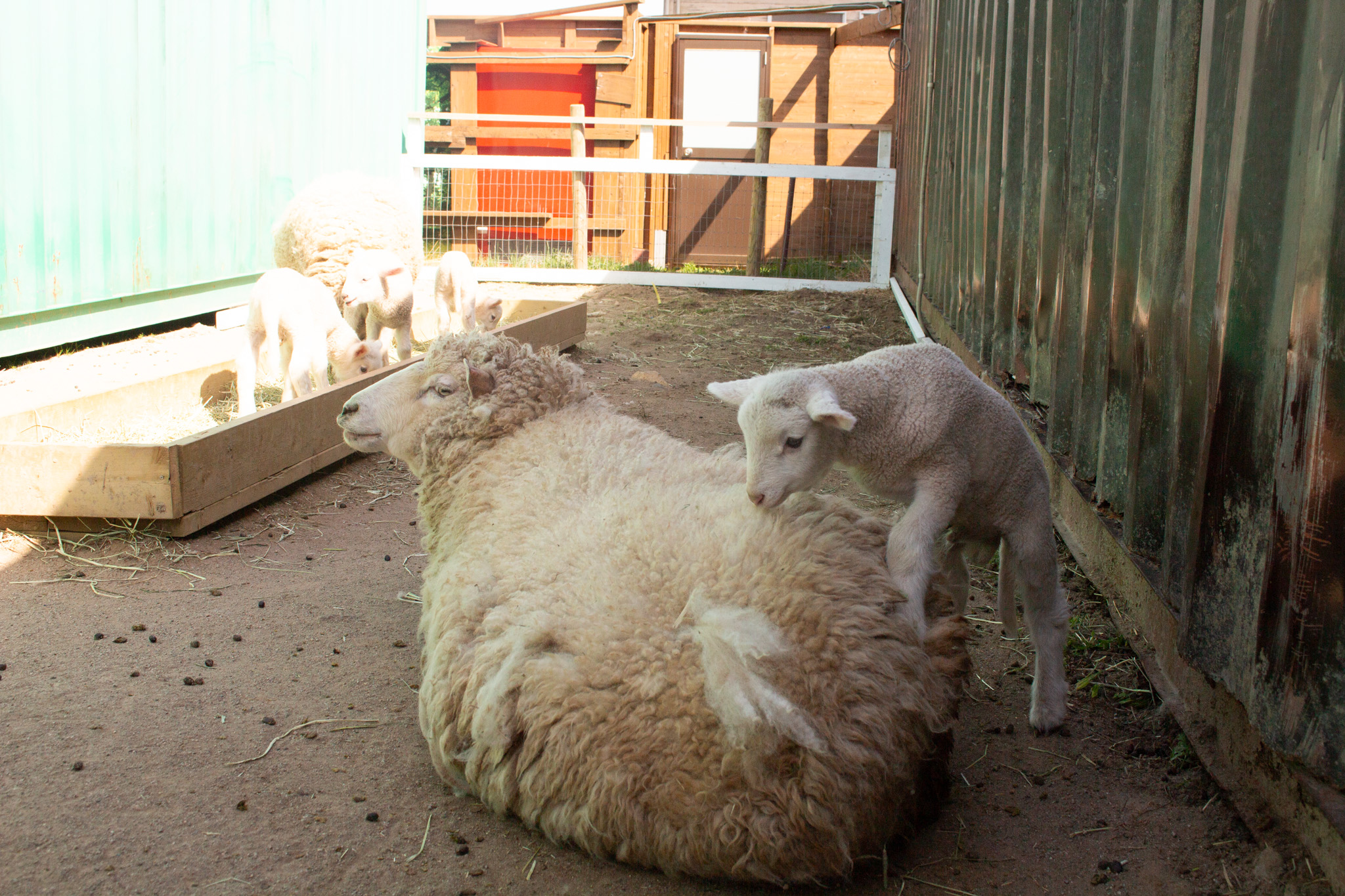 ふわふわの毛並みと、親子で寄り添う微笑ましい姿や、子羊たちの元気いっぱいな様子をお楽しみください。