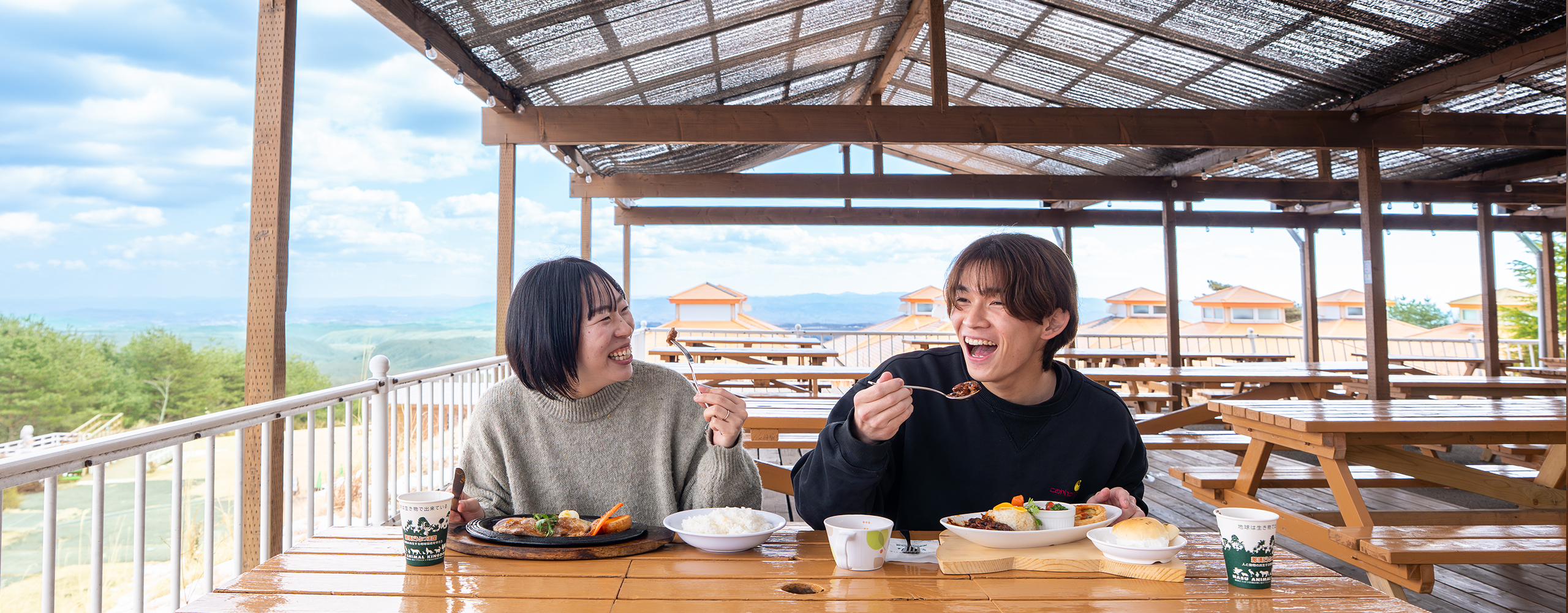 那須の景色を楽しみながら食事をヤマネコテラス