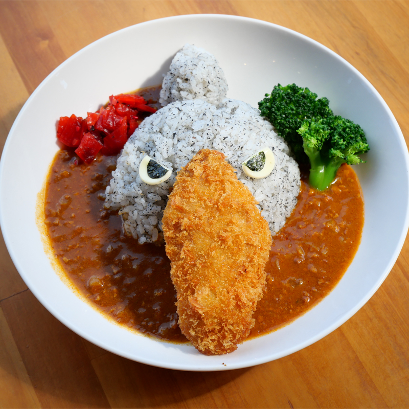 ハシビロコウ公開記念! 黒ゴマご飯にがっつりカツフライで満足な一皿です。