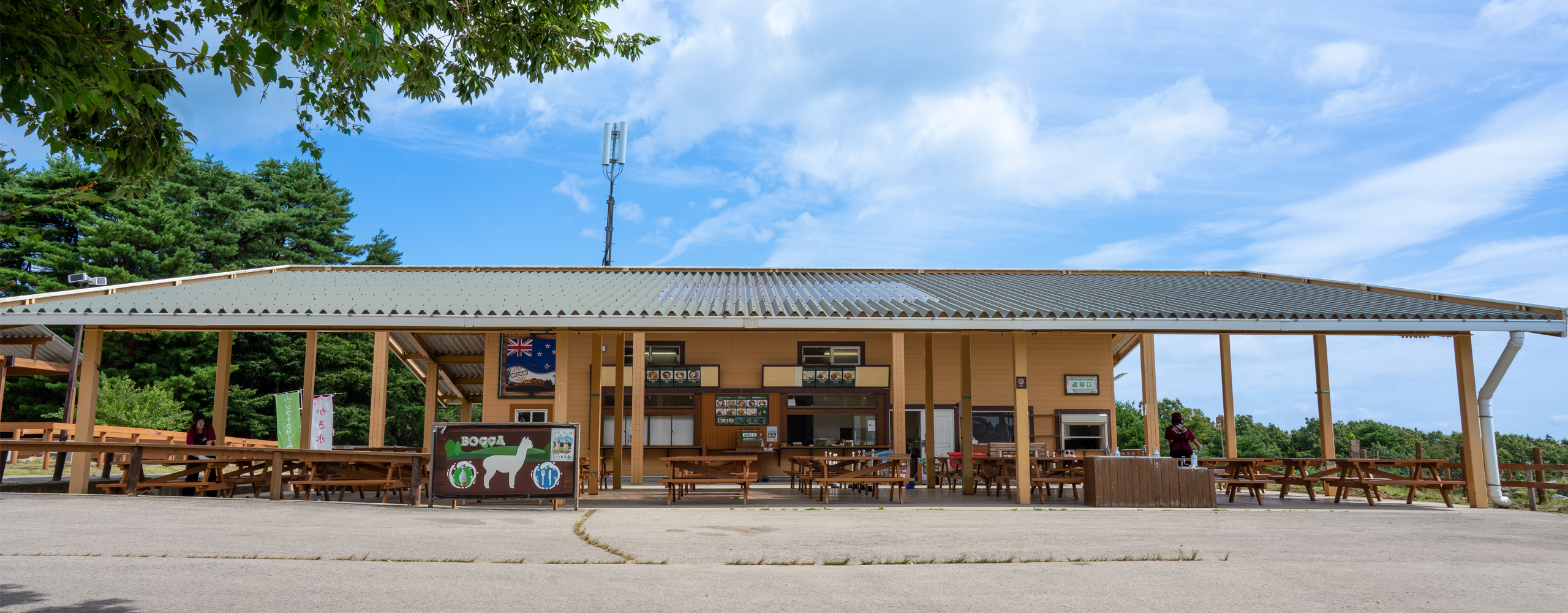 アルパカを眺めながらお食事が出来るオープンスタイルのレストランで