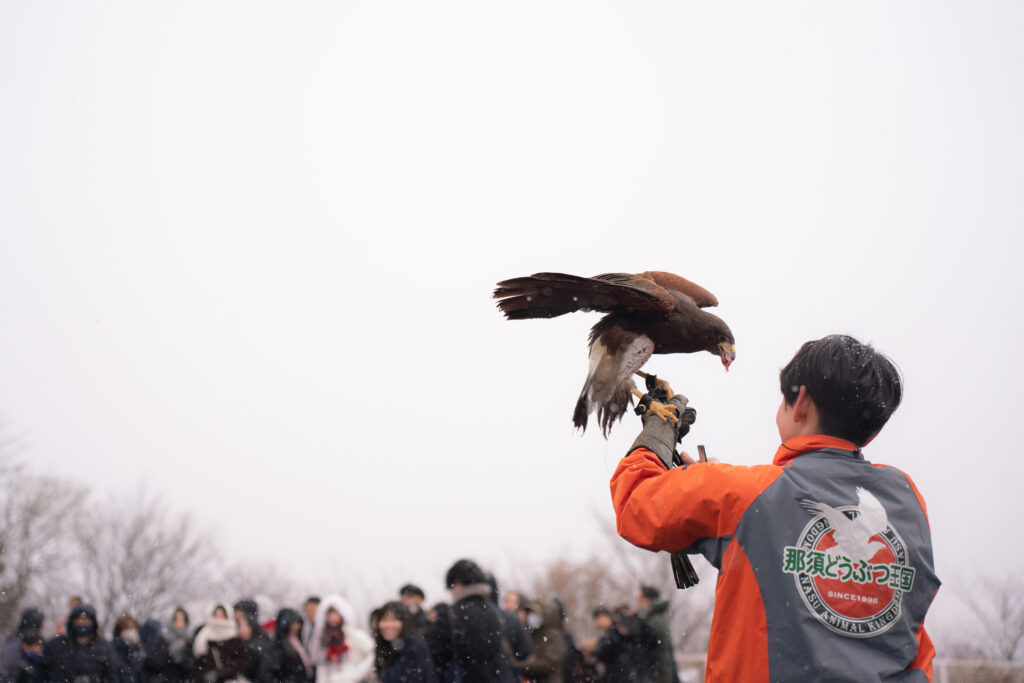那須の大自然、そして大空を舞台に繰り広げられ、猛禽類たちが登場し、フライトや様々なパフォーマンスを行います。