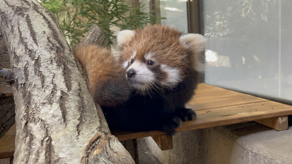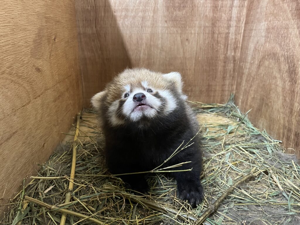 10月9日からアジアの森にて公開をしているレッサーパンダの赤ちゃん。2025年7月11日生まれ。すくすく成長中 ♪